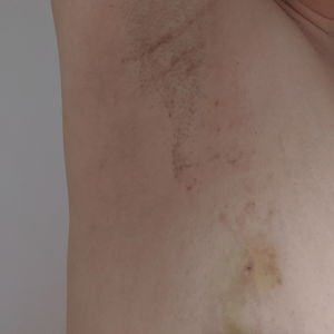 Ok, so excuse the close up of my armpit. It’s hard to include photos which don’t just flash my breast or nipple to the world. I cropped out my face in this photo too as I was massively sleep deprived (thanks to anxiety-based insomnia) and looked rough as a badger’s arse.